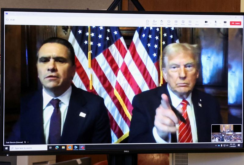 Trump pleaded not guilty and has vowed to appeal the guilty verdict. He appeared with his lawyer on TV screens beamed to the courtroom with two American flags in the background.