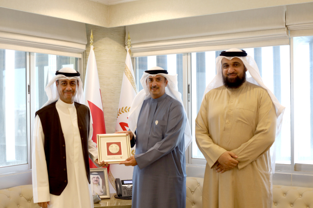 Justice, Islamic Affairs and Endowments Minister Nawaf Al Maawda received Ahli United Bank group chief executive Ahmed Soud Alkharji.