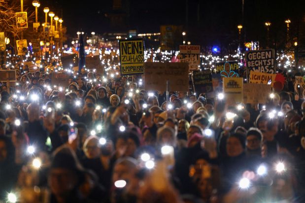 Around 160,000 gathered at Berlin's Brandenburg Gate, next to the Bundestag lower house, according to the Berlin police. The protesters held banners reading "We are the firewall, no cooperation with the AfD" and "Merz, go home, shame on you!".