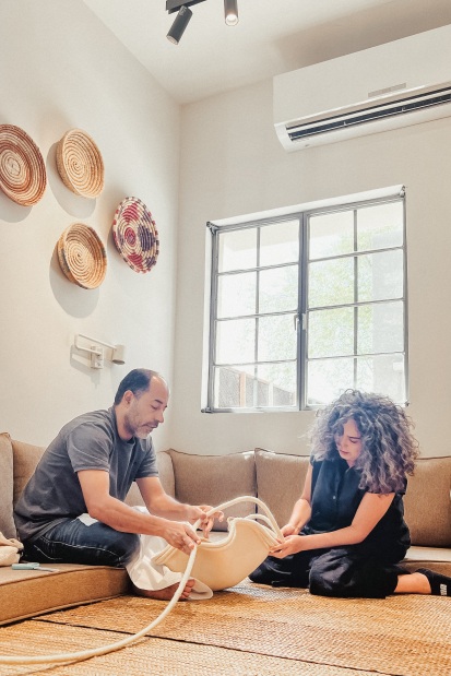 “Incorporating palm fibres spun in burlap was a turning point. This element not only highlighted Bahrain’s weaving traditions but also bridged the tactile warmth of craft with the cool elegance of contemporary design.