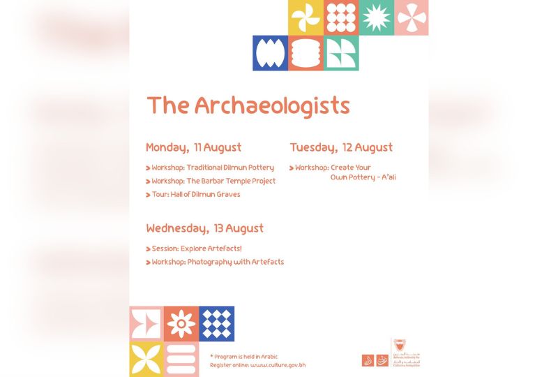 From Monday to August 27, the children’s programme will offer a diverse range of activities in Arabic across several themes – ‘Bahraini Treasures’, ‘Arts and Crafts’, ‘History Explorers’ and ‘The Archaeologists’.