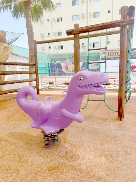 I was completely blown away by the upgrades. The entire area is now beautifully shaded, which is an absolute game-changer for keeping the little ones safe and cool. My toddler’s face lit up as she explored the new features, especially the purple dinosaur spring rider, which quickly became her favourite. She also loved the see-saw and the brilliant spiderweb swing, which is perfect for a group of kids. The slide and tunnel apparatus thankfully has remained as it continues to be a favoured option for my daughter.