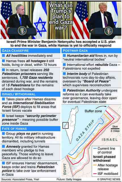Mediators Qatar and Egypt shared the 20-point plan with Hamas after Israeli Prime Minister Benjamin Netanyahu had appeared alongside Trump at the White House and endorsed the document, saying it satisfied Israel’s war aims.