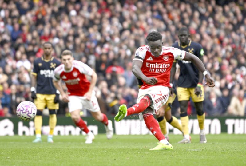 Bukayo Saka made the points safe with a second-half penalty on his 200th Premier League game.