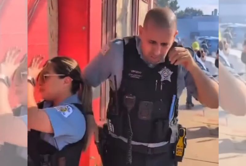 Police officers in the US were caught in clouds of tear gas during clashes with protesters in Chicago after Immigration and Customs Enforcement (ICE) personnel deployed the riot control agent.