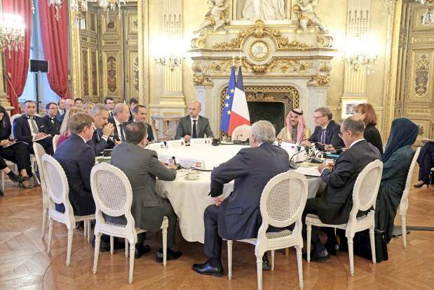 Opening the meeting, French President Emmanuel Macron said the aim was to work side by side with the United States’ plan and that the discussions in Paris were complementary to it.