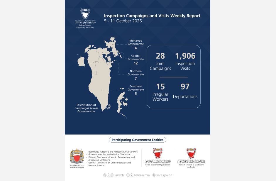 Spearheaded by the Labour Market Regulatory Authority (LMRA), the drive comes as part of efforts to protect the stability and competitiveness of the labour market in the kingdom .