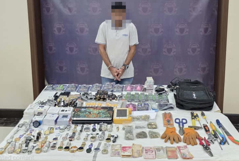 The Interior Ministry announced that as part of the ongoing security efforts by the General Directorate of Criminal Investigation and Forensic Science, the Criminal Investigation Directorate has arrested a 38-year-old Asian man for stealing from several commercial shops in the Capital Governorate, with the total value of the stolen items estimated at BD10,000.