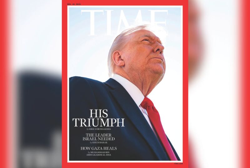 Time unveiled the cover on Monday as Trump landed in Israel to meet the families of returning hostages and address the Israeli parliament before heading to Sharm el Sheikh.