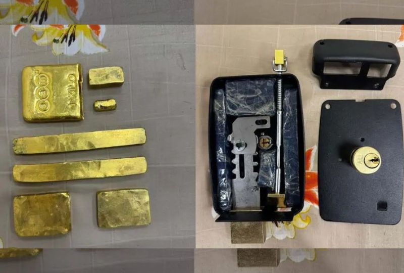 Officials intercepted the suspect's checked baggage after they received a tip-off and discovered five solid gold bars, valued at approximately Rs23 million (approximately BD100,000), intricately concealed inside a metallic lock.