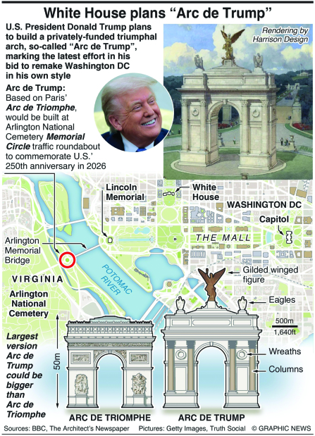 Reports suggest Trump has reviewed three versions of the design – small, medium and large – and has expressed a preference for the largest, which could stand even taller than the Arc de Triomphe in Paris.