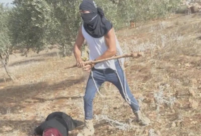 A Palestinian woman was hospitalised after a masked Israeli settler assaulted her with a wooden club on her own land.