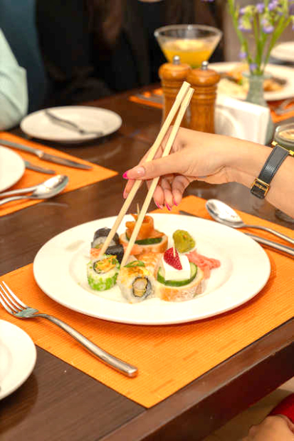 Explore the interactive live cooking stations, where culinary magic unfolds, all within a vibrant setting.