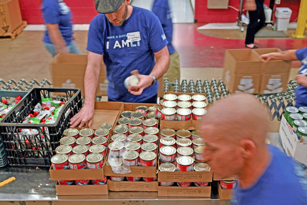 More than 50m people received food from food banks, pantries and other charitable sources in 2023, compared to roughly 40m in 2019, according to Feeding America, a national food bank network.