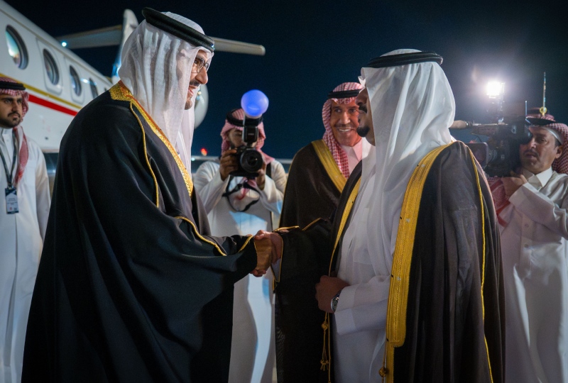 Upon arrival, Shaikh Isa bin Salman was received by His Royal Highness Prince Mohammed bin Abdulrahman bin Abdulaziz Al Saud, Deputy Governor of Riyadh Region .