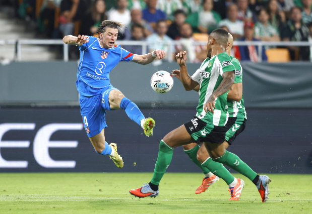 Atletico made a bright start on a rainy evening in Seville, opening the scoring in the third minute with a superb low strike on the volley from Simeone. They extended their lead on a counter-attack, with Alex Baena curling home a fine finish into the top corner in added time before the break.