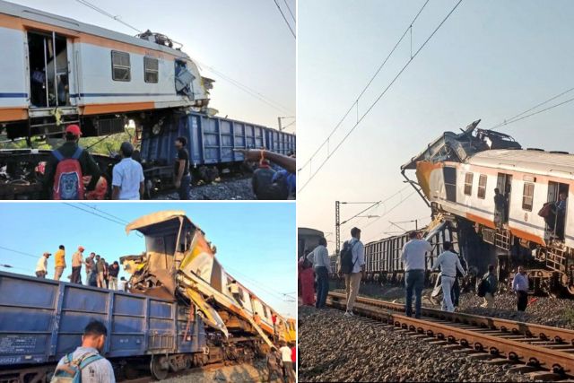 Television footage showed the mangled first carriage of the passenger train partially perched atop the last carriage of the goods train, as police and rescue teams tried to pull out survivors and a crowd watched from the parallel tracks.