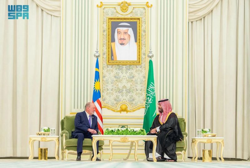 Saudi Arabia’s Crown Prince Mohammed bin Salman bin Abdulaziz Al Saud received King of Malaysia Sultan Ibrahim Iskandar at the Royal Court in Al-Yamamah Palace in Riyadh on Tuesday.
