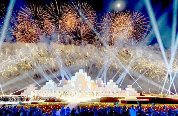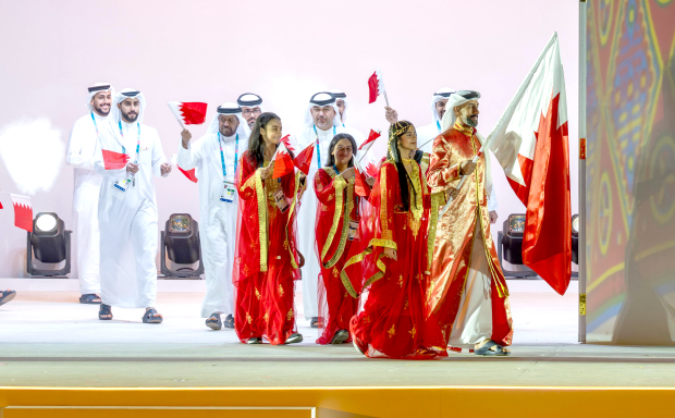 ISLAMIC SOLIDARITY GAMES – SUPREME Council for Youth and Sport first deputy chairman, General Sports Authority chairman, and Bahrain Olympic Committee (BOC) president Shaikh Khalid bin Hamad Al Khalifa attended last night the opening ceremony of the sixth Islamic Solidarity Games, which are being held in Riyadh, Saudi Arabia. The grand inauguration took place at Al Janadriyah Racecourse in the Saudi capital, and it featured the 57 national delegations participating in the multi-sport event from around the world. Bahrain’s senior men’s volleyball national team captain Naser Anan and table tennis national team player Dana Al Khayyat had the honour of carrying the kingdom’s flag and leading Bahrain’s delegation members in last night’s parade of nations. Saudi Olympic and Paralympic Committee president and Saudi’s Minister of Sports Prince Abdulaziz bin Turki bin Faisal Al Saud was on hand at the opening, as were BOC vice-president Shaikh Isa bin Ali bin Khalifa Al Khalifa and BOC secretary general Faris Al Kooheji. Above, Bahrain’s delegation members during the parade of nations.