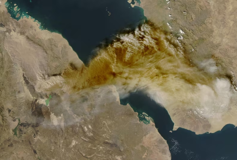 On Tuesday, the ash had covered parts of Pakistan and northern India, according to tracking website Flightradar24, after crossing Yemen and Oman.