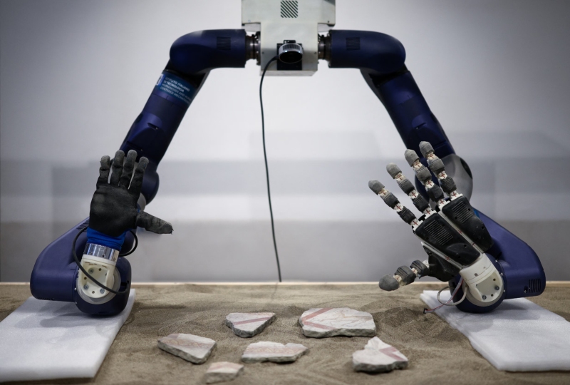 The robot uses twin arms equipped with flexible hands in two sizes and vision sensors to identify, grip and assemble fragments without damaging their delicate surfaces.