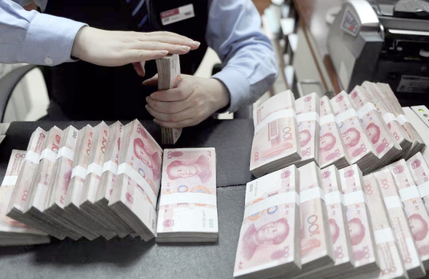 An employee counts 100 Chinese yuan banknotes at a bank in Hefei, Anhui province. Yuan hit its strongest level against the dollar in more than a year on Wednesday