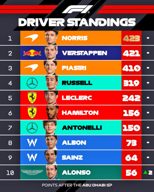 For Lando Norris, the target was simple. A top three finish would guarantee him the championship. Anything lower than that and he would be relying on others to help him do the job. Verstappen needed a win, with Norris fourth or lower. A Piastri win with Norris sixth or lower would hand the title to the Australian. Almost inevitably, the three title contenders took the top three positions in qualifying, but not without a few errors and perhaps some nervy, twitchy driving along the way. It was Verstappen who put in the fastest lap to take pole, with Norris alongside him and Piastri in third.