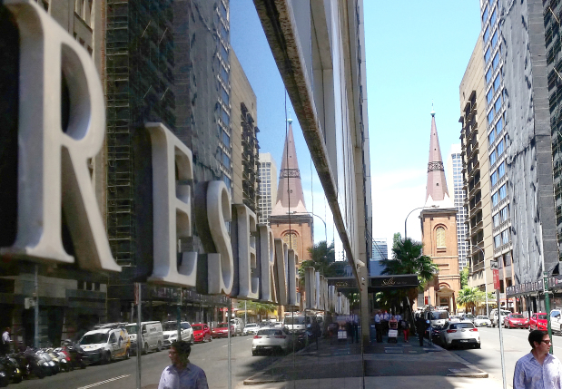 Pedestrians walk past the Reserve Bank of Australia building in central Sydney