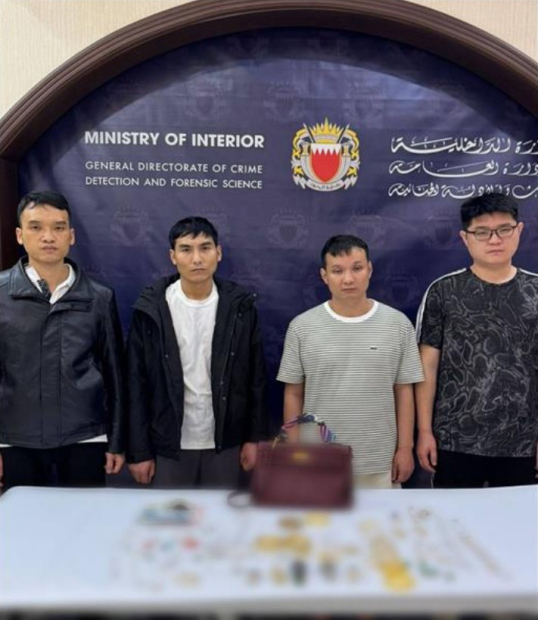 Four Chinese nationals have been arrested for allegedly stealing gold jewellery worth BD50,000 from a residence in the Southern Governorate, the Interior Ministry announced yesterday.