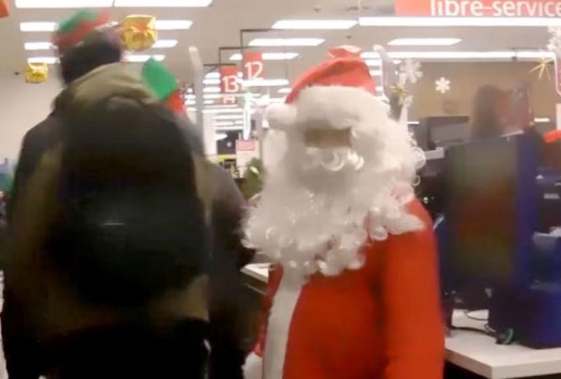 Around 40 individuals dressed as Santa Claus and elves staged a dramatic grocery store robbery in Montreal, walking out with carts full of goods.