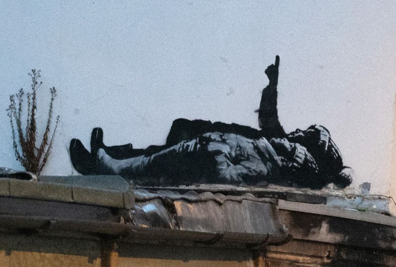 In September the mysterious artist made headlines with his mural depicting a protester lying on the ground holding a blood-spattered placard, while a judge, in a wig and gown, looms over him, wielding a gavel.