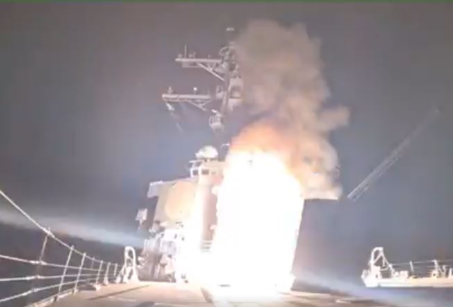 A video posted by the Pentagon showed at least one projectile launched from a warship. A US defence official said the strike targeted multiple militants at known ISIS camps.