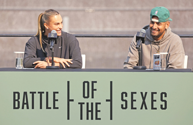 TENNIS – WORLD number one Aryna Sabalenka and Australian Nick Kyrgios said they were excited about facing the unknown when they meet in today’s “Battle of the Sexes” exhibition match that has divided opinion in the tennis world.
