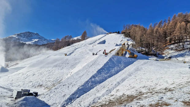 The venues in Livigno must produce large quantities of artificial snow to create the halfpipes and jumps needed for snowboarding and freestyle skiing events, with their snow cannons being supplied by water from the Monte Sponda reservoir.
