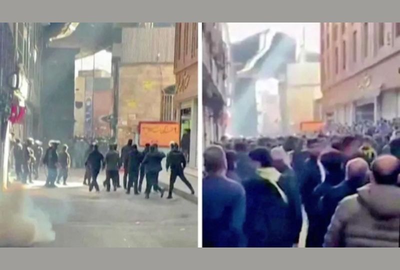 Yesterday, videos obtained by the BBC showed security forces fired tear gas during clashes with protesters who chanted slogans against Iran’s clerical rulers at Tehran’s Grand Bazaar.