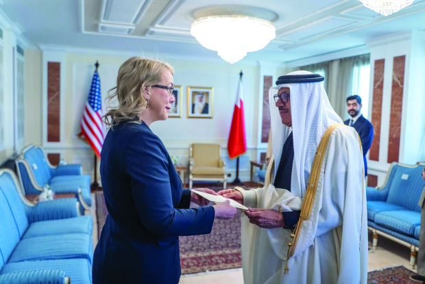 Foreign Minister Dr Abdullatif Al Zayani yesterday received a copy of the credentials of Stephanie Hallett, the newly-appointed US Ambassador.Dr Al Zayani commended the long-standing strategic partnership between Bahrain and the US, and wished her success in her diplomatic role supporting the interests of both countries and peoples .