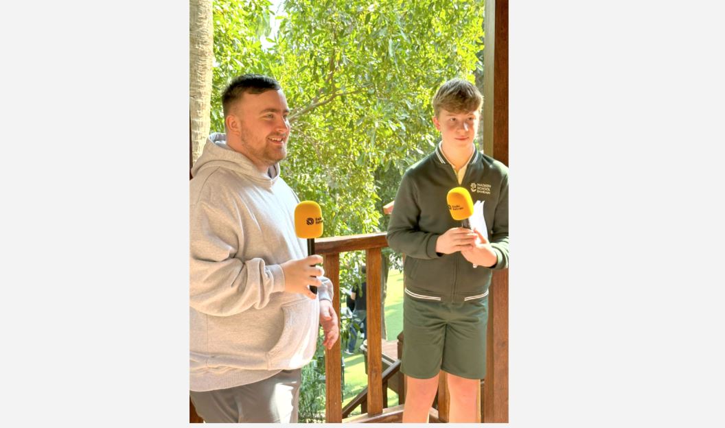 Lucky Luca, wearing his Nadeen International School uniform, was with a broadcasting party from Radio Bahrain.