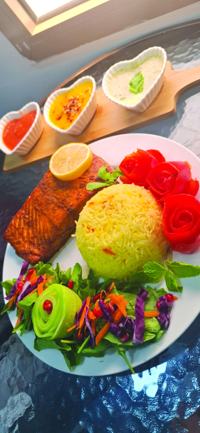 The medical laboratory technician has bagged a cash prize of BD100 for her creation – Salmon with Saffron Rice and Trio of Dips – a ‘celebration of freshness, colour and flavour’.