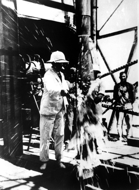 An engineer tries to control the oil flow during Bahrain’s early oil years