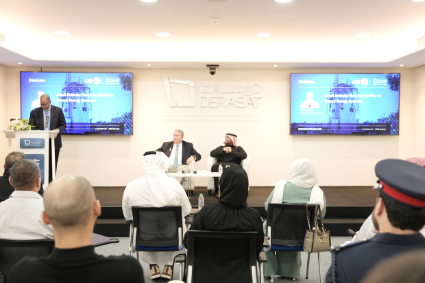 The ThinkTalk lecture, organised in co-operation with the US Embassy, was held as part of Derasat’s energy and environment studies programme, which addresses strategic transformations in the energy sector and their implications .