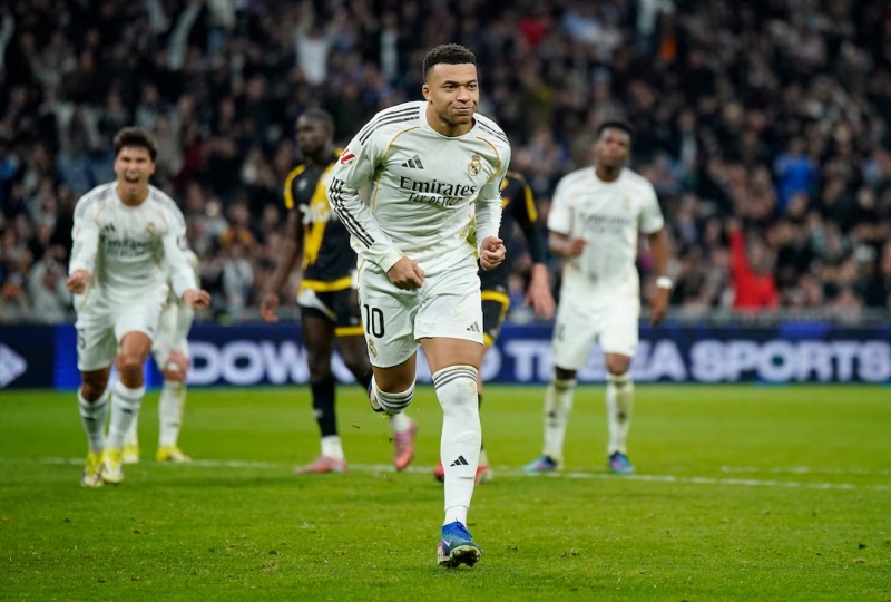 MADRID - A penalty from Kylian Mbappe in the 10th minute of stoppage time rescued Real Madrid on Sunday, giving them an agonising 2-1 victory over local rivals Rayo Vallecano in LaLiga and keeping Los Blancos within one point of leaders Barcelona.
