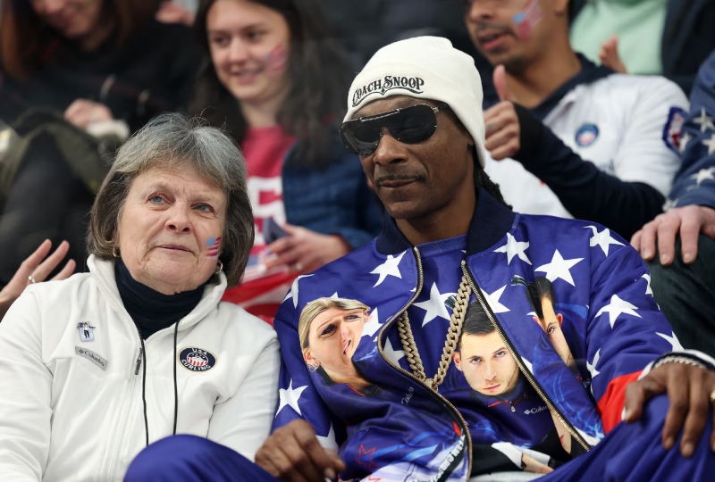 CORTINA D'AMPEZZO - Rapper Snoop Dogg brought a touch of flair to the mixed doubles curling competition on Thursday, sporting a custom jacket featuring the faces of American duo Korey Dropkin and Cory Thiesse while cheering them to victory over Canada.