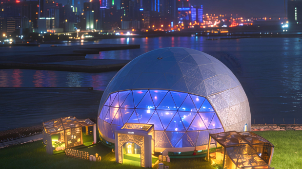 Framed by the tranquil waters and city skyline, with sunsets casting a golden glow behind it, The Dome offers a truly enchanting setting for families, friends, and colleagues to celebrate the spirit of Ramadan .