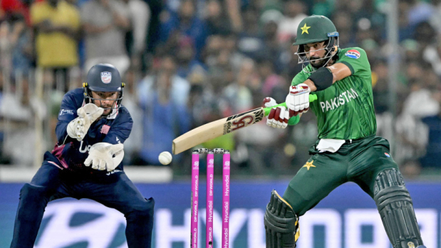 Chasing 191, Shayan Jahangir got the US off to a bright start, with two fours against Shaheen Shah Afridi in the first over, and a six over the long-on boundary against Ayub in the next. But Pakistan introduced spinners from the third over to control the flow of runs. After Nawaz dismissed Shayan’s fellow opener Andries Gous (13) in the fifth over, the US could only add 26 runs in the next five overs.