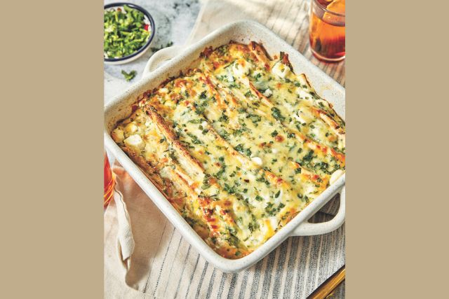 - Preheat the oven to 180°C. Fold each tortilla into little accordions and then place all six tortillas, folded sides up, into a square baking dish (about 9x9 inches).