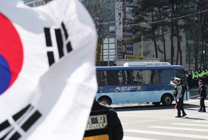 A bus carrying former South Korean President Yoon Suk Yeol arrives at the Seoul Central District Court, for his sentencing trial in his insurrection case, stemming from his short-lived declaration of martial law in December 2024, in Seoul, South Korea. Image credit: Reuters