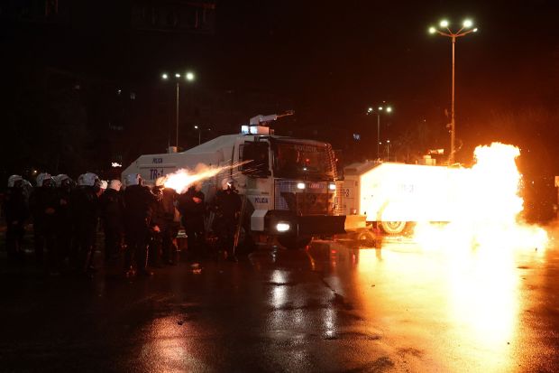 TIRANA - Police in Tirana fired tear gas and used water cannon in clashes on Friday with opposition protesters demanding the resignation of the Albanian government following corruption allegations against the deputy prime minister.