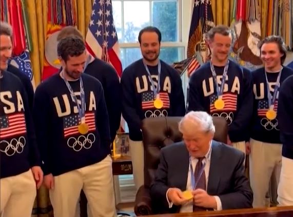 Footage showed Trump and the athletes posing for photographs at the Oval Office.