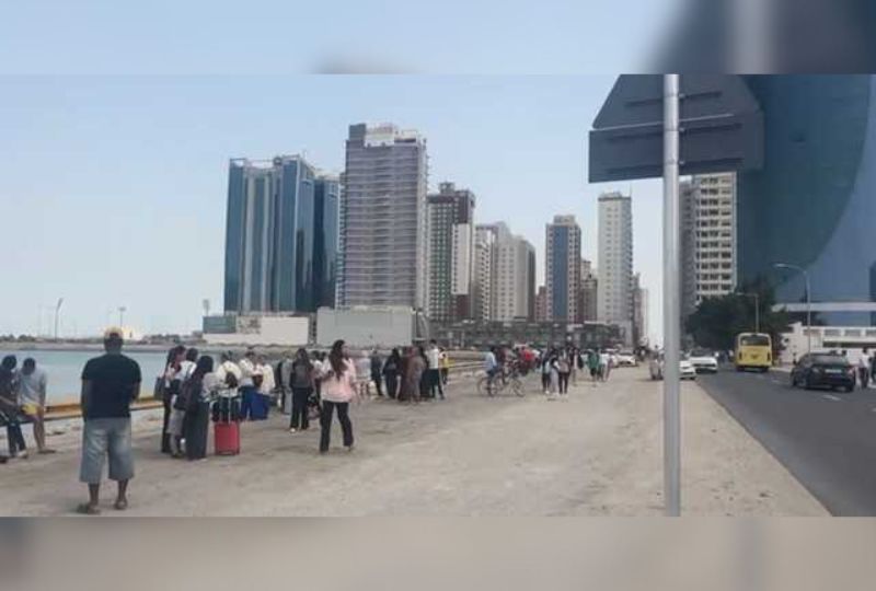 Several people lined up near Juffair to shoot videos or take selfies as interceptors were countering Iranian missiles amidst thick black smoke bellowing in the background .