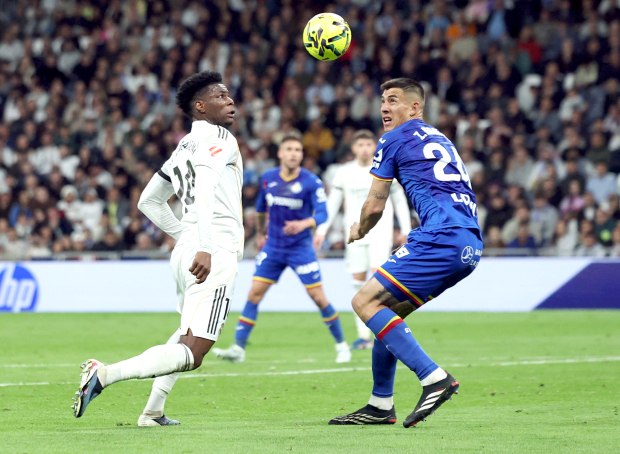However, Real managed to carve out openings and Vinicius Jr should have put them ahead in the 13th minute when he raced clear on the counter-attack, only for goalkeeper David Soria to block his close-range effort with a sharp right-footed save.